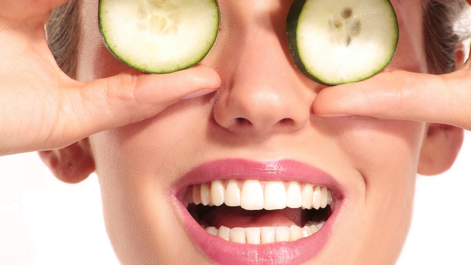 Cucumber slices – Cucumbers are not only delicious in a salad, but because they have such a high water content, they can reduce swelling and dark circles under the eyes as well. Lie down in a comfortable position and place chilled cucumber slices on your eyes for 15 minutes.