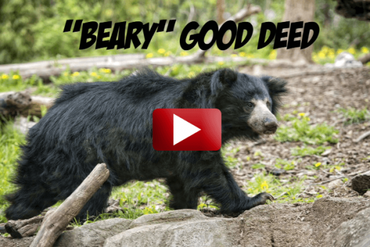 This curious bear got more than he bargained for when he found his head stuck in a milk can. Lucky for him, two kind loggers were passing by and knew just what to do. Doing a kind deed was not out of these guys’ job descriptions. This just makes you smile!