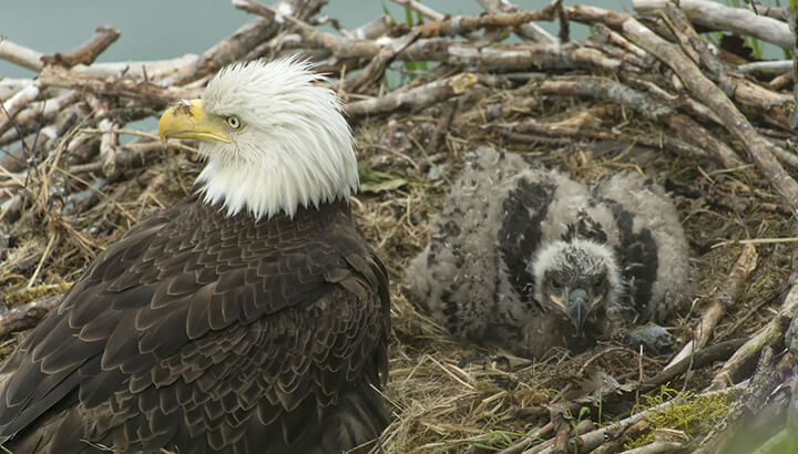 “The eaglets that he was raised with seem to have accepted him as another sibling, and the parents seem to have adopted him as their young,” Bird said.