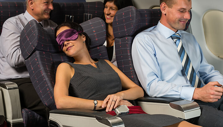 That never-ending “blah blah blah” just won’t stop from the travelers behind you. You now know more about their jobs, shoes, pets and political views than you need to know. If you want a little shut-eye, invest in noise-canceling headphones. And to further improve your sleep, carry on a neck pillow and eye mask.