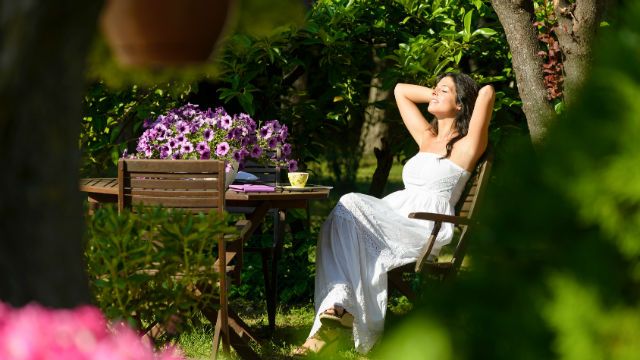 Woman resting in garden on summerFind the stillness inside of you, it is there. If this is difficult, try repeating the sound “om,” and focusing on your breathing. Build up to 15 minutes daily as you get better at this technique.