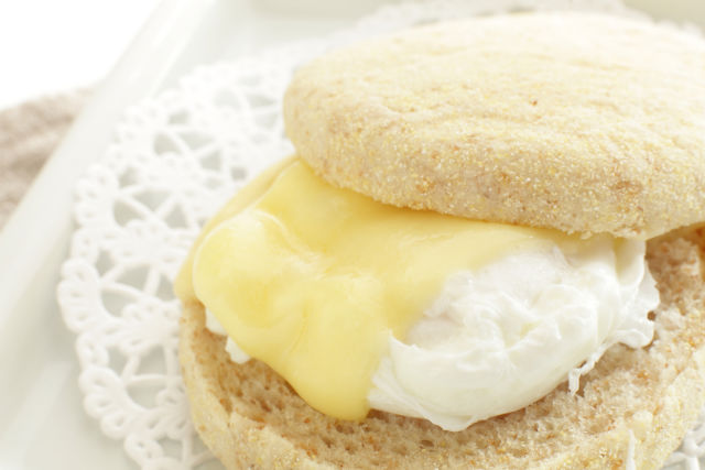 Toast the gluten-free English muffins to desired crispiness. Lightly coat pan with organic coconut oil. Whisk two eggs together in the pan and fry until done. Divide in half and top each half with a slice of organic cheese. Leave the mixture in the pan for 1-2 minutes to soften the cheese. Fold each half and place in between the English muffin halves.
