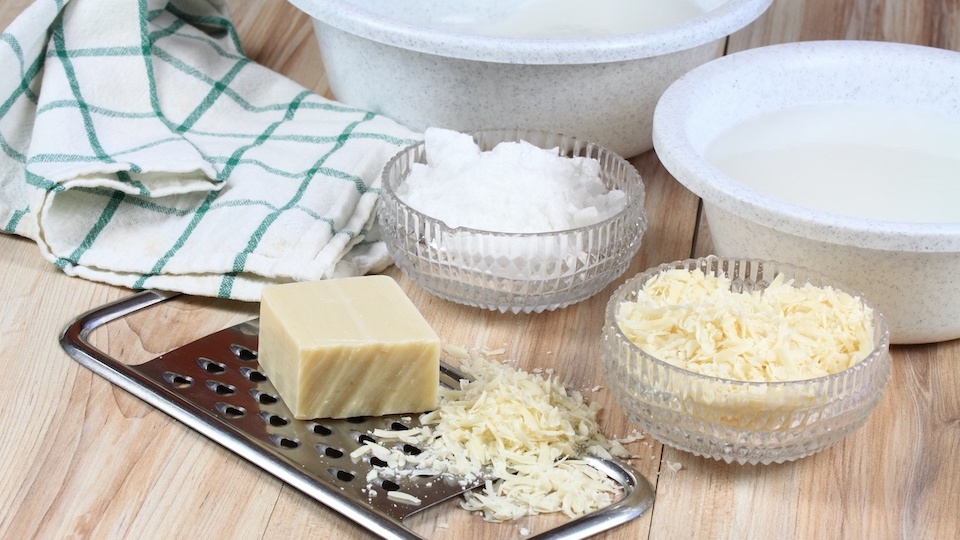 - Grate the soap and add shreds to a pot with 4 cups of hot water. Heat on medium-high until completely melted. This usually takes about 10 minutes.