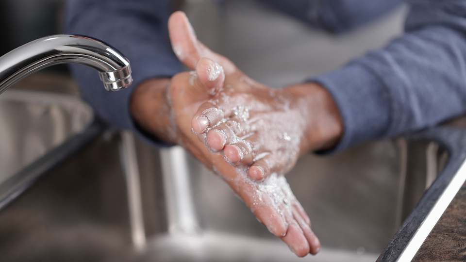 - Wash hands, as usual, using the solution, rinse, and pat dry.