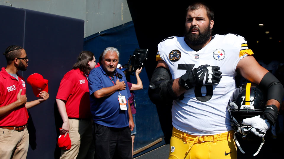 Steelers lineman and Army veteran Alejandro Villanueva refuses to join anthem protest, stands alone on slideline https://t.co/2HM1VNaXi0 pic.twitter.com/6WPJ056kCS